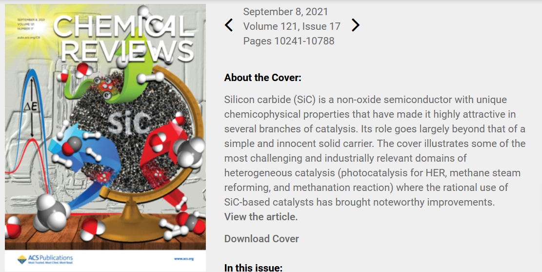 近日,郭向云教授應(yīng)邀與意大利國家研究委員會(huì)、中科院大連化學(xué)物理研究所、SICAT公司、法國國家科研中心等研究人員合作撰寫的關(guān)于高比表面積碳化硅催化應(yīng)用的綜述文章“Porous Silicon Carbide (SiC): A Chance for Improving Catalysts or Just Another Active-Phase Carrier?”在化學(xué)領(lǐng)域國際頂級(jí)綜述類雜志Chemical Reviews上作為封面文章發(fā)表。該論文系統(tǒng)地介紹了碳化硅作為催化劑載體在催化領(lǐng)域中的應(yīng)用情況:(1)精細(xì)化學(xué)品合成,如烷烴氧化制烯烴和含氧化合物、不飽和鍵加氫、C-X鍵形成等;(2)燃料制備,如各種液體燃料、天然氣和氫氣;(3)環(huán)境保護(hù)和修復(fù),如水和空氣中有機(jī)污染物的氧化脫除及分解;(4)燃料電池催化劑,如甲醇和乙醇的電氧化、氧氣還原等;(5)光催化過程,如光解水產(chǎn)氫、精細(xì)化學(xué)品光催化合成、有機(jī)污染物降解等;(6)碳化硅復(fù)合物無金屬催化劑等。并就碳化硅催化劑研究中應(yīng)該關(guān)注的重點(diǎn),以及未來發(fā)展趨勢作了展望。