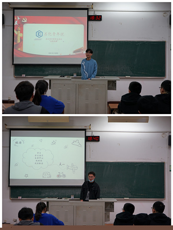為展示新時代青年“聽黨指揮、矢志奮斗”的精神面貌,培養(yǎng)同學們“開拓進取、積極向上”的品質(zhì),11月16日18:30,我院在w1202開展石化青年說之五四獎章分享會。本次分享會由自強先鋒于威風、志愿先鋒馮厚恩、創(chuàng)新先鋒王泳丹、團建先鋒許涵僑主講。