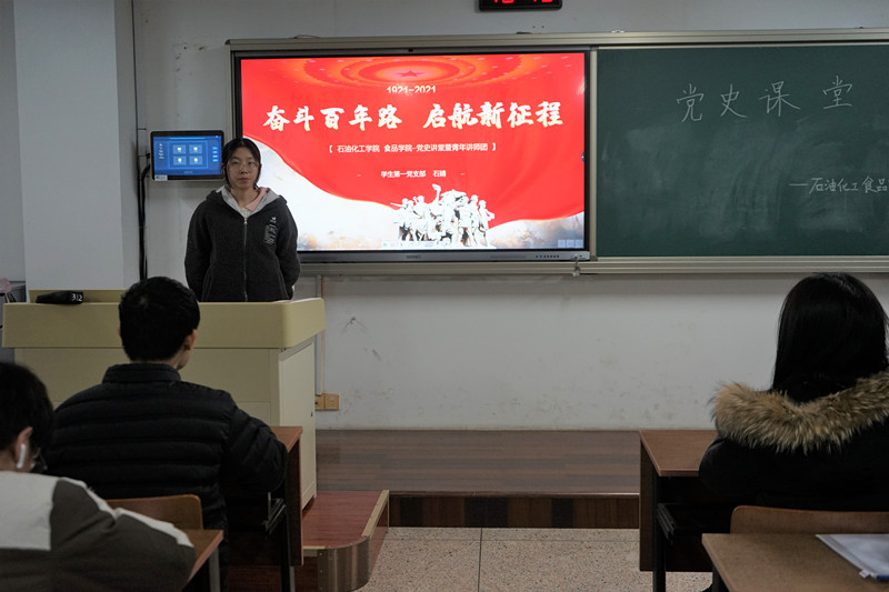 伊始,主講人石婧從中國(guó)共產(chǎn)黨成立紀(jì)念日節(jié)日的由來、黨史發(fā)展脈絡(luò)以及社會(huì)主義革命和建設(shè)時(shí)期三個(gè)方面展開,生動(dòng)地展示了中國(guó)共產(chǎn)黨奮斗書寫的歷史,同時(shí),鼓勵(lì)同學(xué)們?cè)趯?duì)歷史的深入思考中做好現(xiàn)實(shí)工作,更好走向未來。