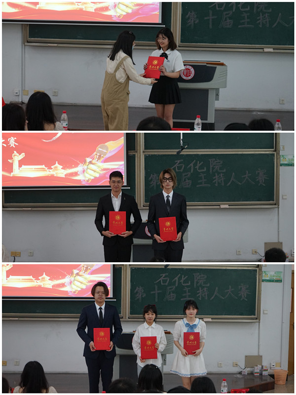 經(jīng)過前期初賽選拔,共六位選手進(jìn)入本次決賽。他們以不同的主題侃侃而談:應(yīng)化212陳閆明宇通過《青年大學(xué)習(xí)家鄉(xiāng)特別版》帶大家認(rèn)識自己的家鄉(xiāng),美麗的海濱城市、浪漫之都——大連;能化211蔡伽豪將老一輩共產(chǎn)黨員為建設(shè)中國共產(chǎn)黨的努力展現(xiàn)得淋漓盡致,希望當(dāng)代青年不斷增強(qiáng)“守初心、擔(dān)使命”的思想意識和行動自覺;作為美食主播,能化212張厚盛通過《舌尖上的美味——廣西篇》呈現(xiàn)給大家有著飲食王國的美譽的中國美食文化;化工215郭慧慧帶大家認(rèn)識了一位網(wǎng)紅,她將讀書之氣帶給我們,點點星火傳出了她自己的光芒;食品211李欣宇基于《送你一朵小紅花》這部電影,倡導(dǎo)愛與珍惜;化工214李芝穎由藝術(shù)鑒賞帶大家走進(jìn)故事背后的真相,了解一段有關(guān)中國文化征服西方世界的長達(dá)八百年的歷史。在即興評述的環(huán)節(jié),六位選手現(xiàn)場抽取自己的主題,以優(yōu)秀的表現(xiàn)、沉穩(wěn)的心態(tài)充分展示自己的主持功底。最終,化工215郭慧慧榮獲一等獎;能化212張厚盛、應(yīng)化212陳閆明宇榮獲二等獎;能化211蔡伽豪、食品211李欣宇、化工214李芝穎榮獲三等獎。