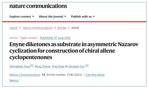 手性環(huán)戊烯酮骨架廣泛存在天然產(chǎn)物及藥物分子中。不對稱催化Nazarovcyclization反應(yīng)是目前公認(rèn)的構(gòu)建手性環(huán)戊烯酮最高效、最便捷的方法。然而,目前發(fā)展成熟的Nazarov反應(yīng)底物種類非常有限。底物種類的局限,進(jìn)而限制了手性環(huán)戊烯酮的多樣性開發(fā)。因此,探索和開發(fā)新型的Nazarov反應(yīng)底物具有重要意義。