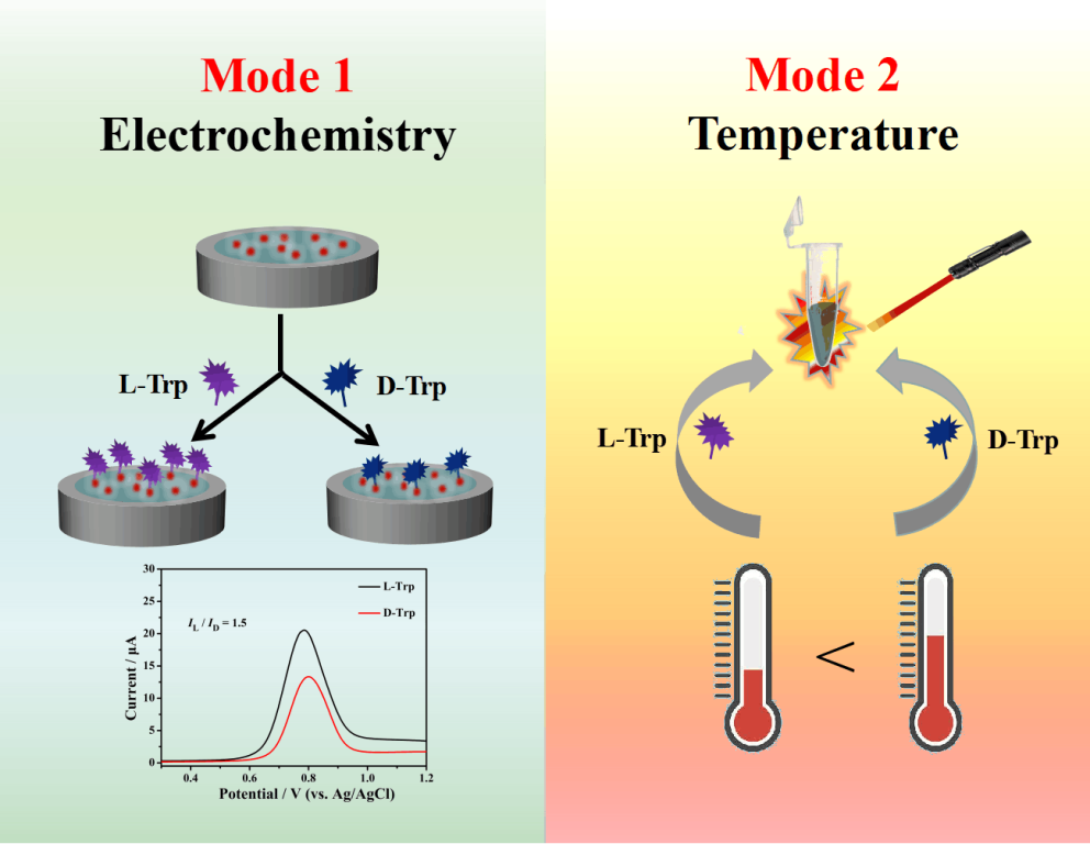 Highly Reliable Chiral Discrimination of Tryptophan Enantiomers through Two Different Modes: Electrochemistry and Temperature, Analytical Chemistry, 2023, DOI: 10.1021/acs.analchem.3c00669