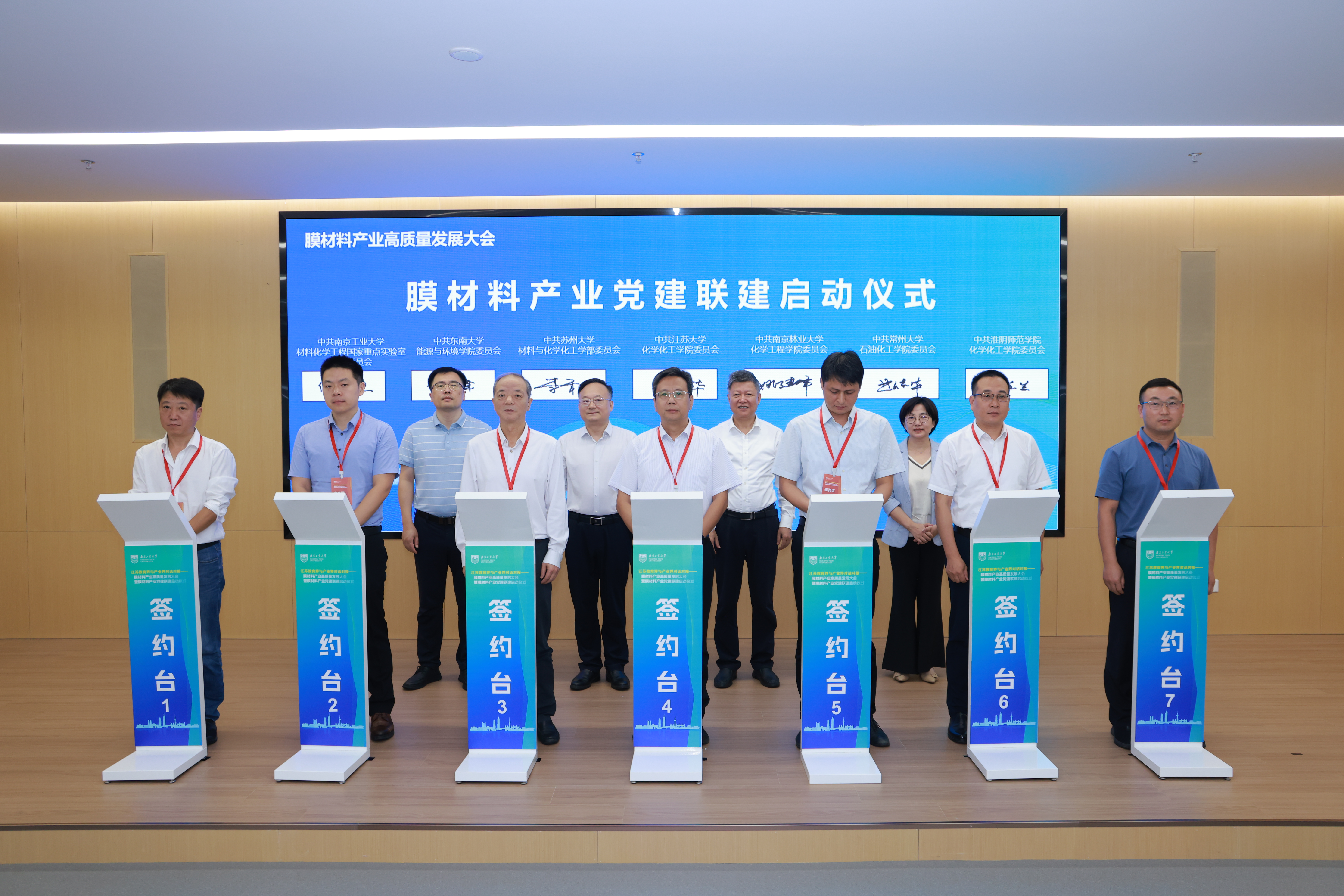 會上,來自常州大學、南京工業(yè)大學、東南大學、蘇州大學、江蘇大學、南京林業(yè)大學、淮陰師范學院等高校,南京江北新材料科技園、張家港保稅區(qū)、揚州化工園區(qū)等園區(qū),以及南京水務集團、江蘇索普集團、南京新工集團、江蘇久吾高科、國家高性能膜材料創(chuàng)新中心等企業(yè)的15家黨組織代表現(xiàn)場簽署膜材料產(chǎn)業(yè)黨建聯(lián)建協(xié)議。
