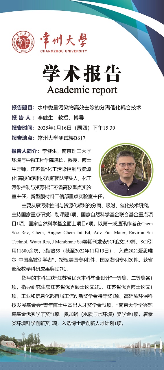 【學術報告】1月16日學術報告—李健生教授 南京理工大學