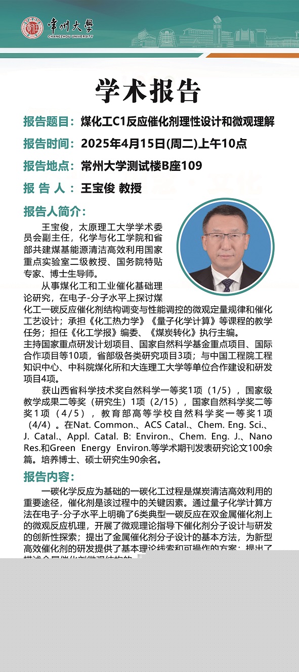 【學(xué)術(shù)報(bào)告】4月15日學(xué)術(shù)報(bào)告—王寶俊教授 太原理工大學(xué)