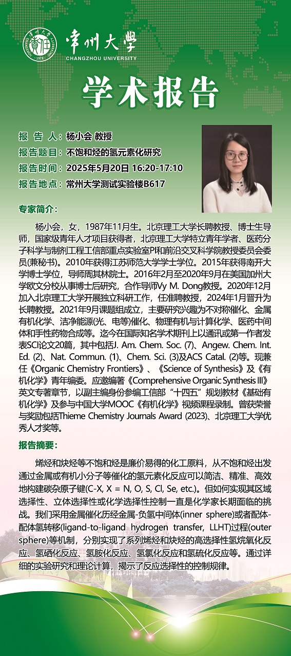 【學術(shù)報告】5月20日學術(shù)報告—楊小會教授 北京理工大學