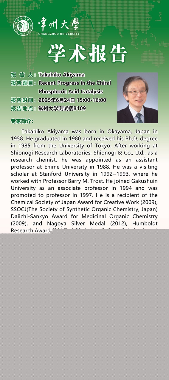 | 【學(xué)術(shù)報(bào)告】6月24日功能雜環(huán)研究院學(xué)術(shù)報(bào)告—Takahiko Akityama教授 學(xué)習(xí)院大學(xué) 朱晨教授 上海交通大學(xué) |