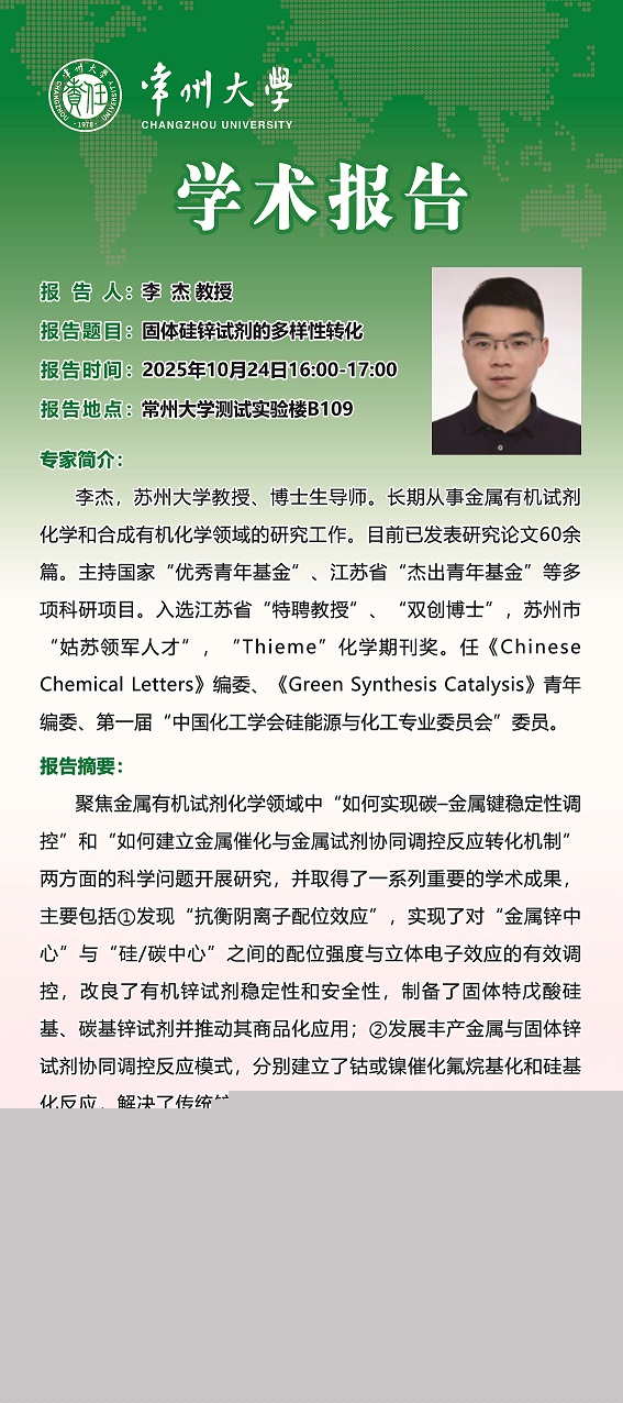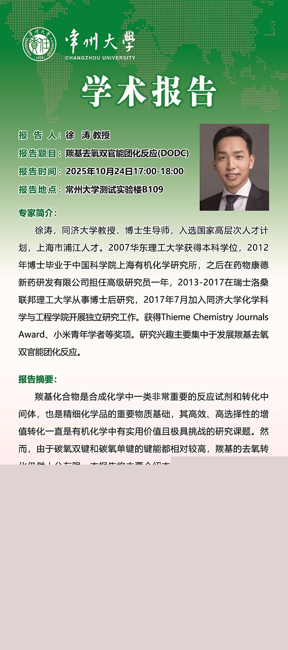 【學(xué)術(shù)報(bào)告】10月24日功能雜環(huán)研究院學(xué)術(shù)報(bào)告——李杰教授 蘇州大學(xué) 徐濤教授 同濟(jì)大學(xué)